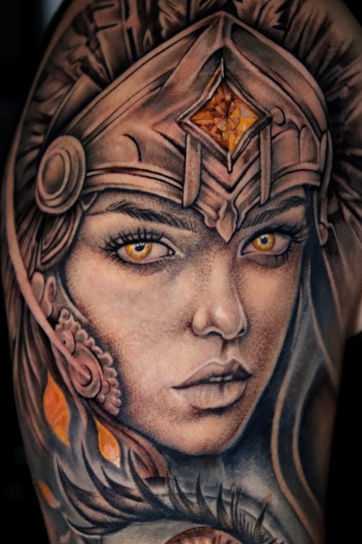 This tattoo symbolises strength, resilience, and connection to heritage. Every line honours the warrior spirit and the sacred feminine energy that leads with courage.